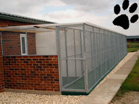 Our kennels are built to the highest of standard in accordance to legislation. Space and comfort is important, that is why we have designed a kennel block where each individual kennel measures a massive 250sqft, having their own under covered outdoor runs overlooking the countryside. Each building is fully double glazed, heated and insulated. For the largest of breeds (Great Danes etc) we have specially designed 4ft hatches to cater for our giant guests. Music is played 24hrs a day so howlers welcome!